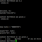 간만에 포스팅하는 거지만 암튼 오늘은 GOT Overwrite를 해 보겠다. 일단 아래와 같은 파일을 만들어보자. 보면 일단 print.c 파일은 root로 SetUID로 고정되어 있다는 것을 알 수 있다. 그리고 print.c 내용을 보면 scanf 함수와 printf 함수가 있는데, 위에 있는 h.c로 만든 h 파일을 이용하여 scanf 함수를 root로 권한을 따고 system 함수의 주소로 조작할 수 있다. 그리고 첫번째 인자로 "%s"인 것을 "./h;"로 바꾸어서 실행하면 system("./h;", buf);가 실행되어 쉘 실행 프로그램인 h를 실행하게 되는 것이다. 그러면 일단 .plt Section의 시작주소를 알아보기 위해서 readelf -S를 사용해보자. readelf를 사용할 때, ..